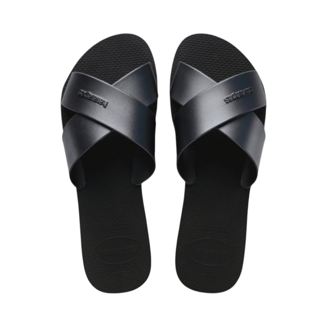 4148866 Sandália Havaianas Aqua Metallic Feminina Slide Original Chinelo A Aqua Metallic é nossa sandália tipo slide, com duas tiras largas que formam um X e um detalhe que faz toda a diferença: tiras metalizadas! O efeito é bem elegante e fica ... R$64,99