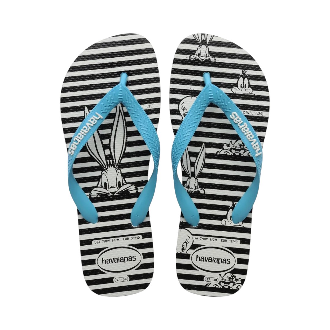 4149890 Chinelo Havaianas Top Warner Clássics Fc Personagem Original Chinelo Desenhos icônicos e muita nostalgia no seus pés! Essa é a proposta do chinelo Havaianas Top Warner Classics. Com formato Top, que possui as tiras mais largas, essa sandália ... R$69,99